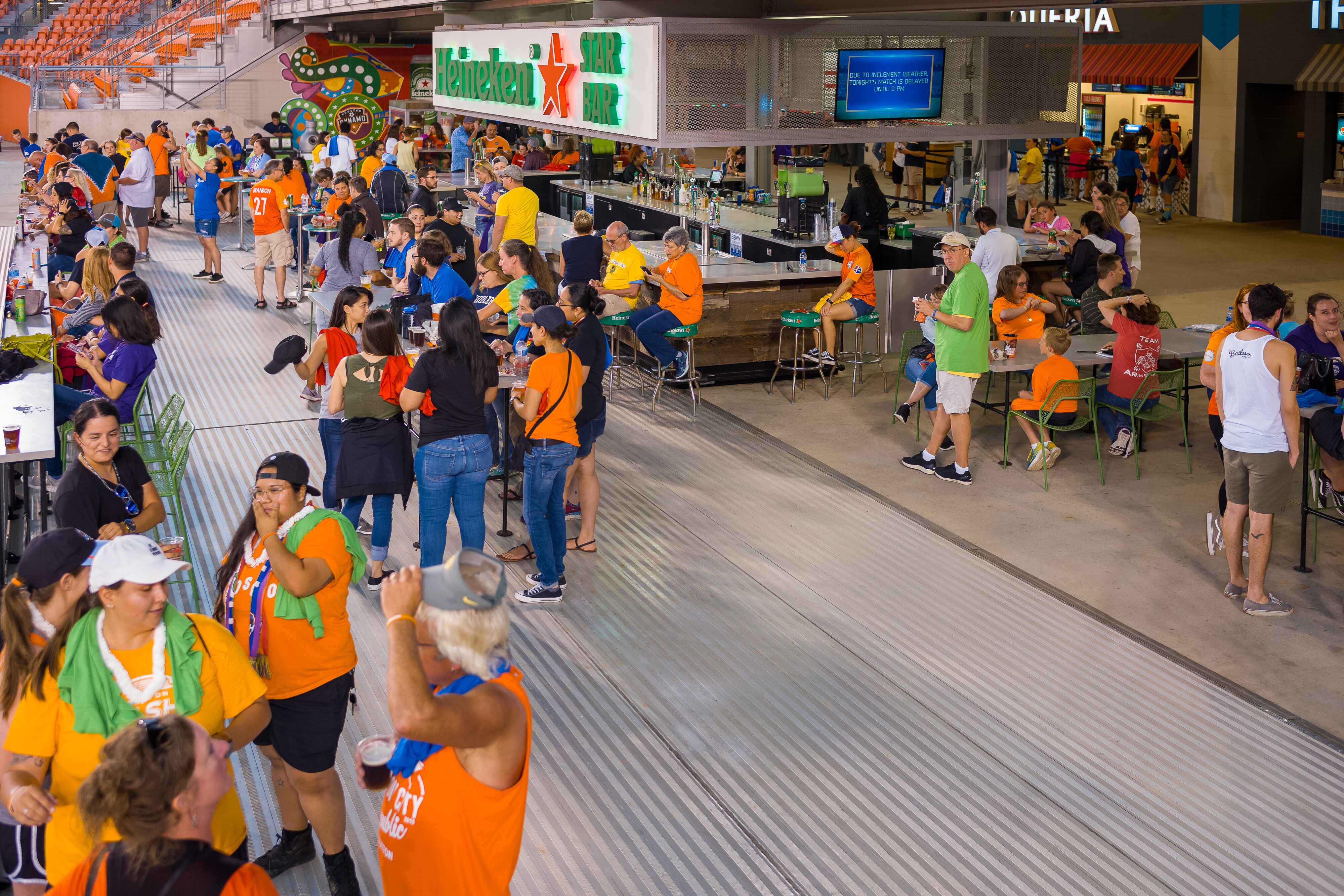The Heineken Star Bar offers a fantastic group experience for up to 150 people to the Dynamo group ticket offerings. Enjoy a Houston Dynamo game from along the drink rail, or seat yourself at one of the bistro tables and chairs. With all the action just a few rows away, you will never want to experience a game anywhere else! Ticket packages include admission to the game along with buffet-style food and beverage options. For more information, contact (713) 276-GOAL or email Mike Mondello at [email protected]