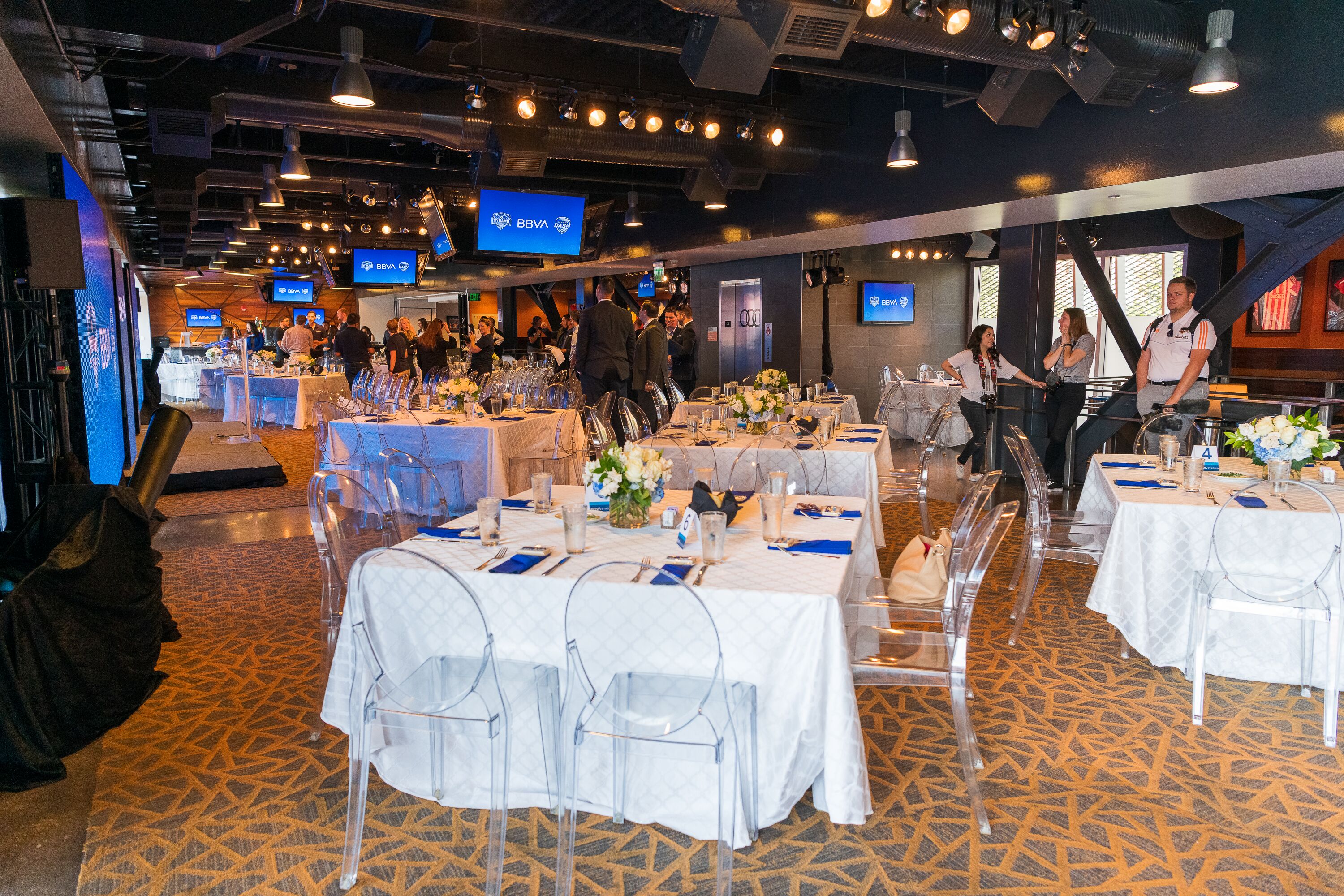 The Lexus Club is the premier event space at BBVA Stadium offering a unique environment for corporate entertaining, relaxing with friends and family, and watching Dynamo games. The Lexus Club offers guests a private entrance and lobby area with access to the space via stairs or elevator. In addition to the lounge areas, the Lexus Club provides stunning views of the field from the outdoor terrace. The Lexus Club's roll-up glass door offers the flexibility of indoor and outdoor accessibility. Dynamo Club Seat Holders with seats in President’s Club Seats – PC 1-6 and 100 Club Seats – 105-107 have access to the Lexus Club during all Dynamo events. For more information call 713-547-3000 or email [email protected].