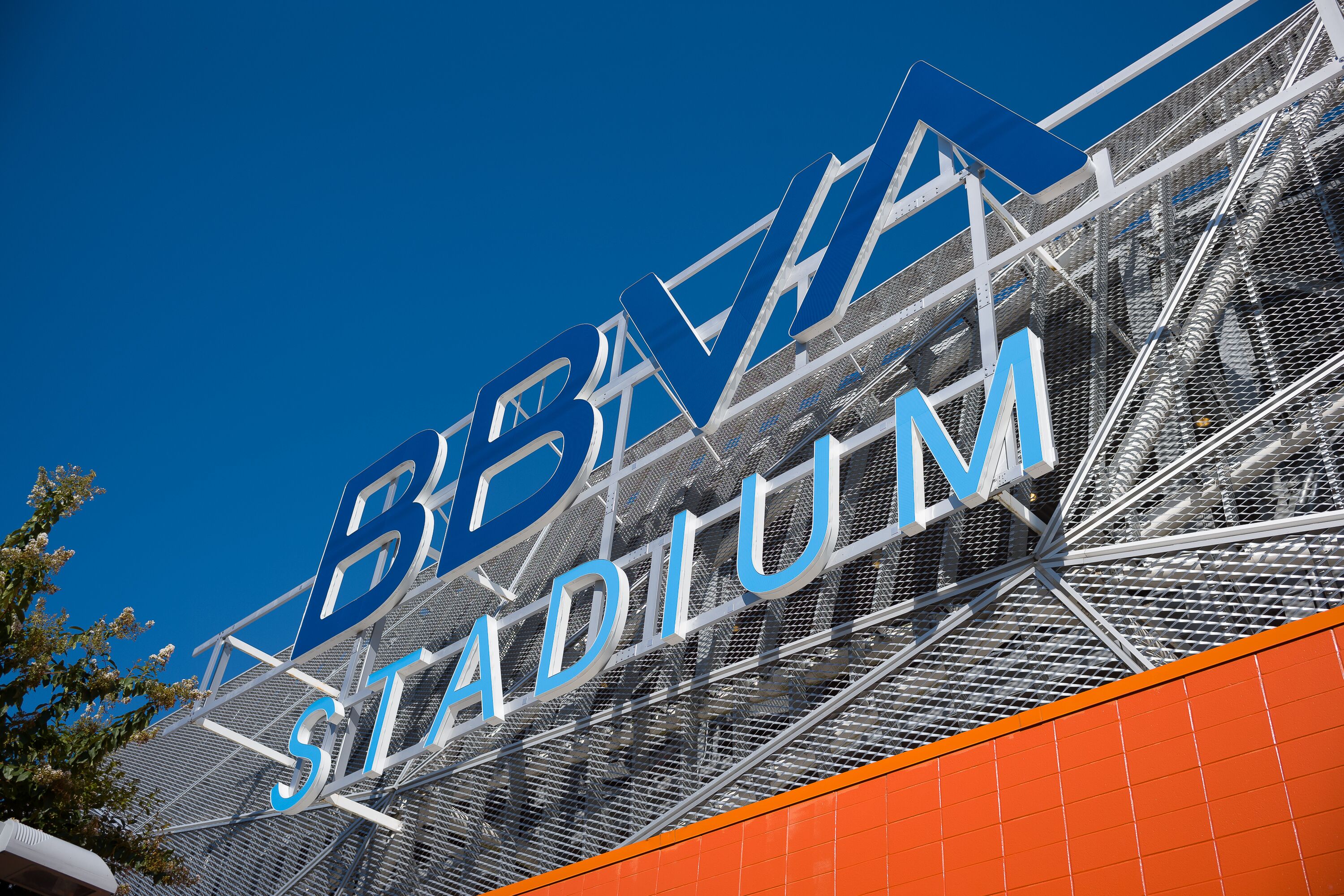 Situated on a six-block urban site near Houston landmarks including Minute Maid Park, the George R. Brown Convention Center, and the Toyota Center, BBVA Stadium is easily accessible for patrons from the entire Houston metropolitan area. The stadium is recognizable thanks in part to its distinctive façade featuring Dynamo orange coloring along with a geometrically-shaped tessellated aluminum mesh which encompasses the stadium while also providing air circulation throughout the building.